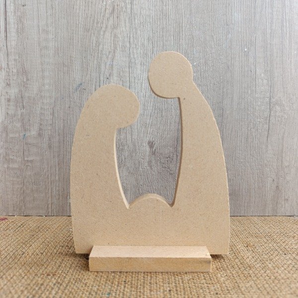 Pesebre realizado en madera de fibrofácil de 9 mm con base. Su altura es de 17 cm